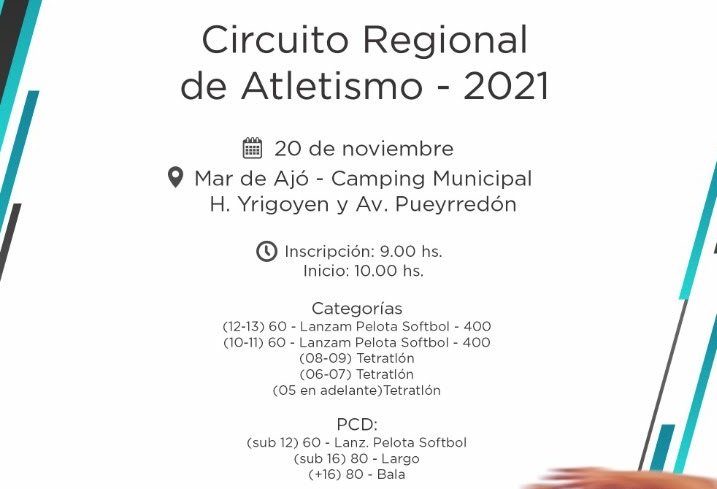 Este sábado 20 se llevará a cabo la última fecha del Circuito Regional de Atletismo. El encuentro comenzará a las 9.00 con la inscripción, para luego desde las 10.00 dar inicio a la competencia oficial en la pista de atletismo del Camping General Lavalle de Mar de Ajó, con la presencia de alumnos de las Escuelas Municipales de La Costa y la región.