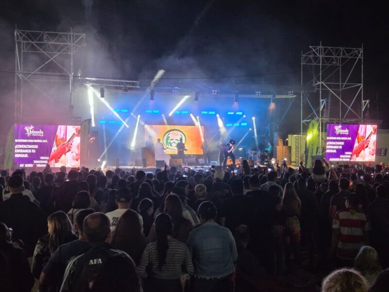 Más tarde, la banda local Faros puso ritmo con su repertorio festivo, y el cierre de la noche fue con el artista Valentín Vargas, quien se presentó con su banda en vivo y convocó a una multitud de jóvenes.