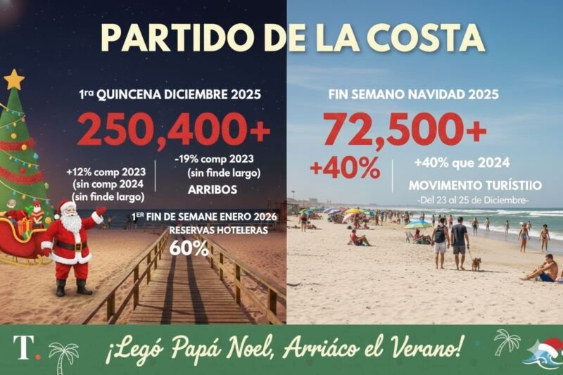 El Partido de La Costa registró un flujo turístico positivo durante el fin de semana de Navidad, y los primeros datos de reservas hoteleras para enero marcan una tendencia en alza que genera expectativas favorables para la temporada 2026.