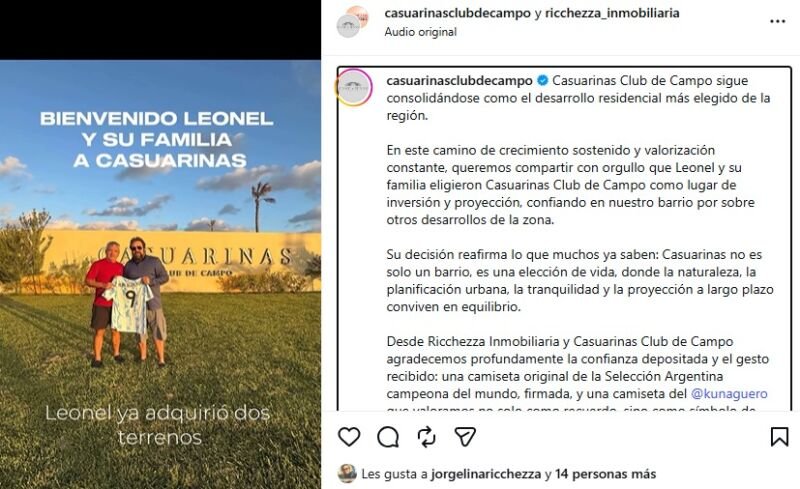 Según se confirmó desde el propio emprendimiento, Leonel se entusiasmó con la propuesta del barrio y eligió parcelas con una particularidad: ambas tienen vista directa al estadio de La Costa, el espacio deportivo central del predio. Las fuentes señalan que la decisión no fue casual y que ya proyecta construir una casa de importante envergadura en el lugar, lo que refuerza el perfil residencial y de alto nivel que Casuarinas viene consolidando en los últimos años.